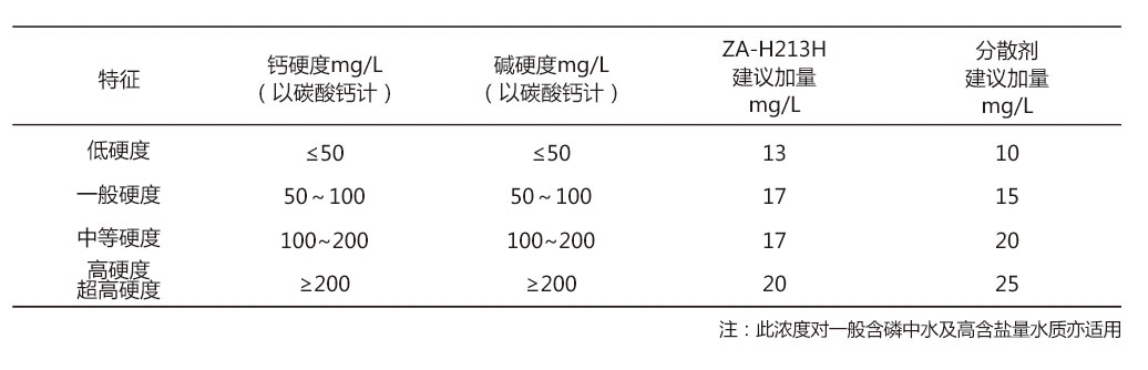 敞開(kāi)式系統(tǒng)用法用量: 建議用量 因水質(zhì)條件和工藝條件不同而異。 在循環(huán)冷卻水中做緩蝕阻垢劑使用,濃度一般10~20mg/L(循環(huán)水中保有濃度,以下同)。根據(jù)水質(zhì)具體可細(xì)分為:
